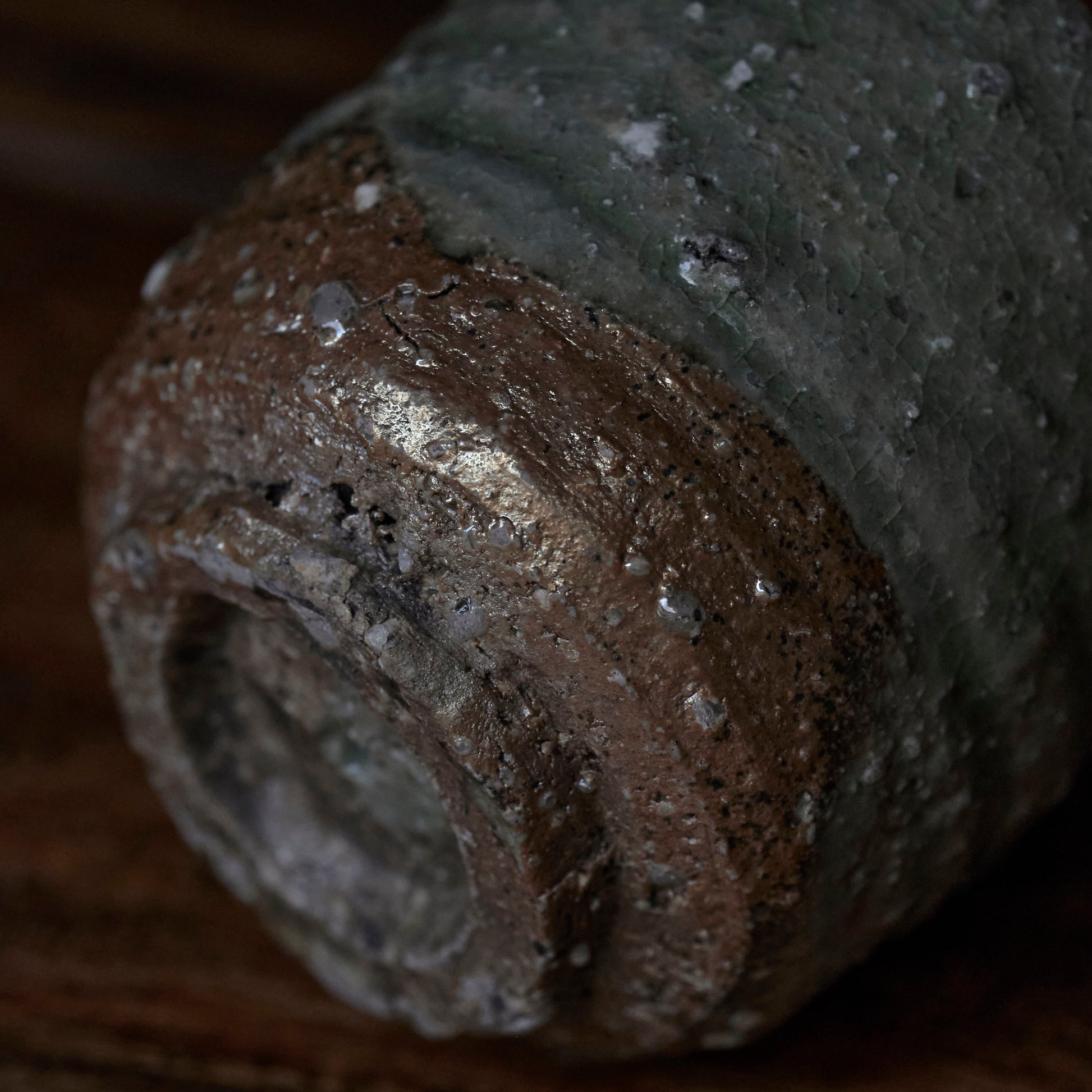 This work is primarily formed from locally sourced refractory white clay from Shigaraki, a clay low in iron and rich in coarse stone particles, known for its exceptional resistance to high temperatures. To this base, Sako adds a carefully measured amount of iron-rich red clay, following his own formula. The interaction between these materials creates depth and subtle variation during firing.