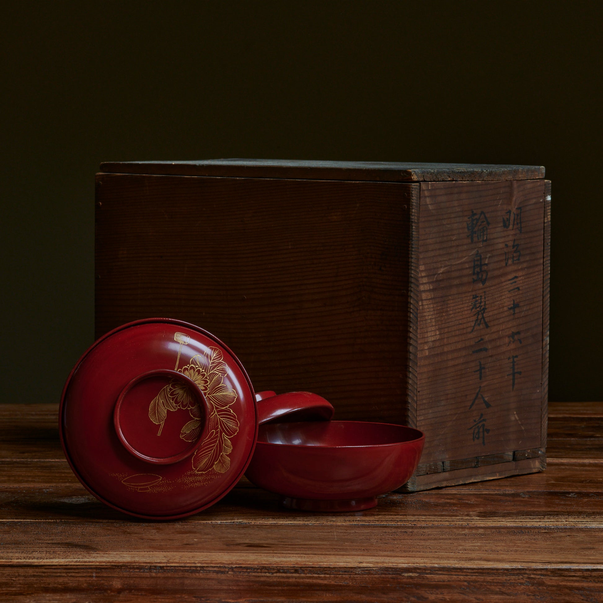 Japanese Lacquerware - Antique Japanese Wooden Soup-Bowl with Wajima-Nuri,