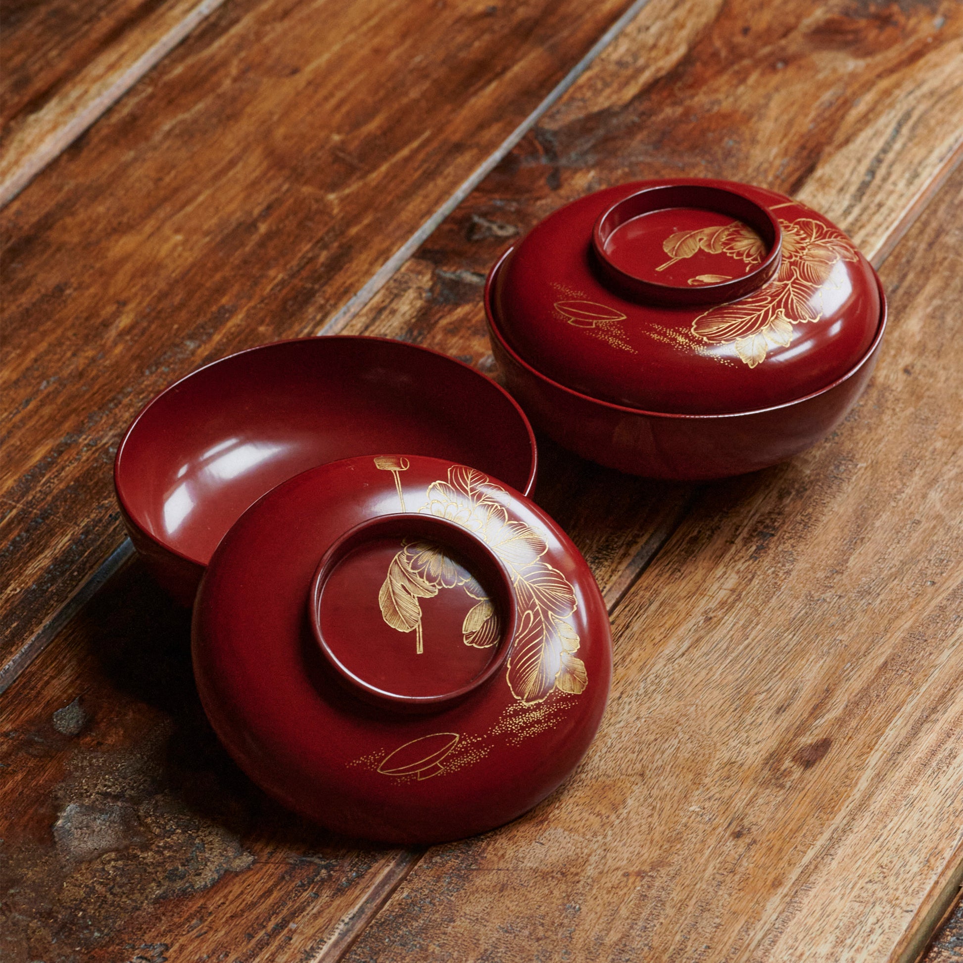The origin of Wajima lacquerware is said to either have been taught by a priest of Negoroji (a complex of Buddhist temples located in the city of Iwade, Wakayama prefecture) during the Muromachi period (1336-1573) or by a priest of Negoroji who ran away from a wartime fire set by Hideyoshi TOYOTOMI (1537-1598) during the Sengoku period (1467-1603). However, nobody knows the exact origin of Wajima lacquerware, even to this day. The common point of all the different theories is that Wajima lacquerware derived from Nego lacquerware, a lacquerware for daily use. Another possible theory is that daily-use lacquerware developed and then transformed into the current form of Wajima lacquerware. It was around 1630 during the early Edo period (1603-1868) that a form close to the present Wajima lacquerware was established. Moreover, the production process became remarkably similar to the current one between 1716 to 1736. Nowadays, Wajima lacquerware is considered to be an elegant and slightly upscale product but it actually had a different reputation before the Showa period (1926-1989). It was commonly used as a household lacquerware for important ceremonial occasions because it is solid and sturdy. However, due to changes made to the style of ceremonies and its registration as a traditional craft in 1975 by the Japanese government, it has developed more artistic connotations.