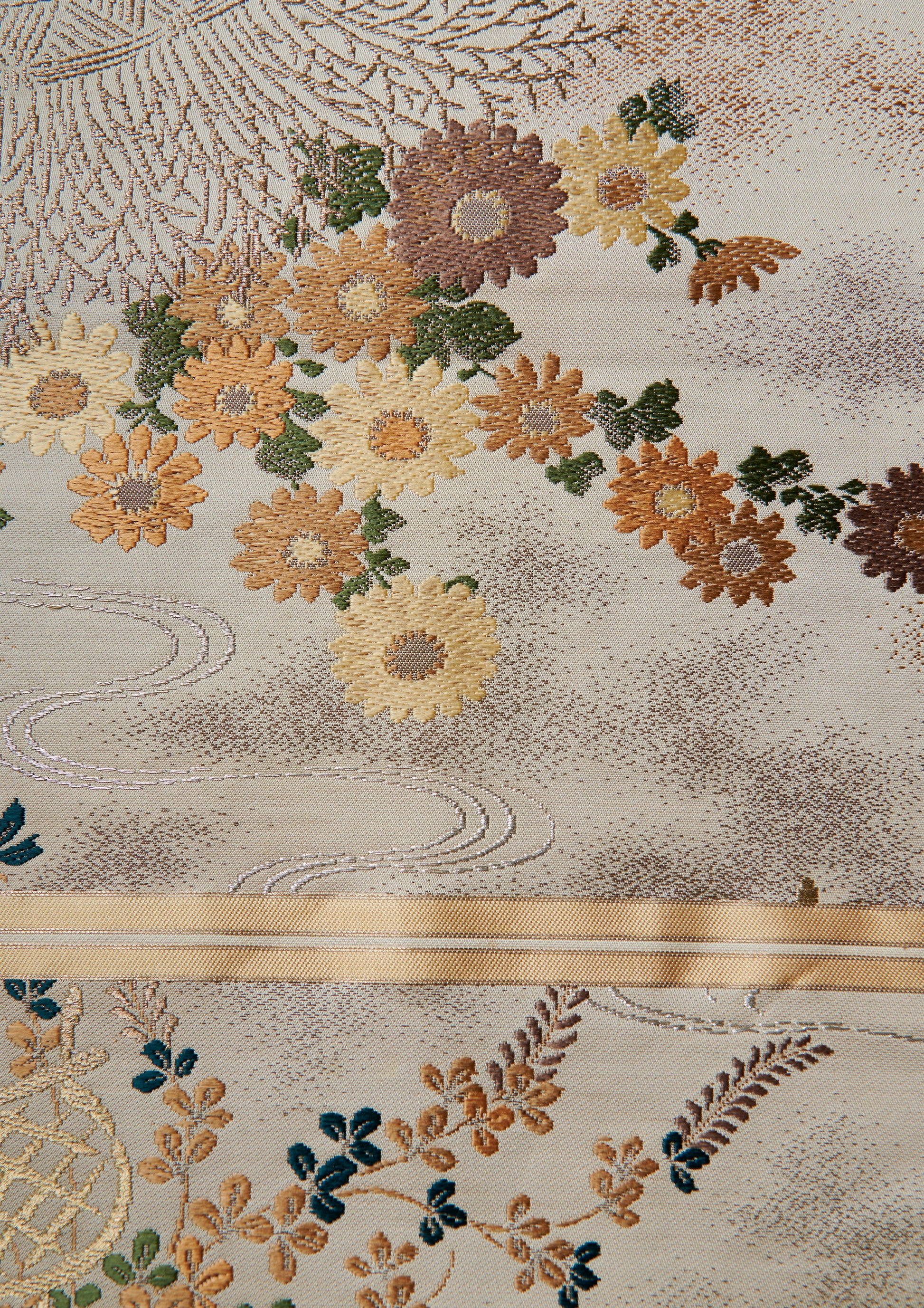 Introduced as a lighter, easier-to-wear alternative, the fukuro obi became popular in the early Showa years. Suitable for both formal and semi-formal occasions, it reflected the era’s shift toward more modern, flexible lifestyles.