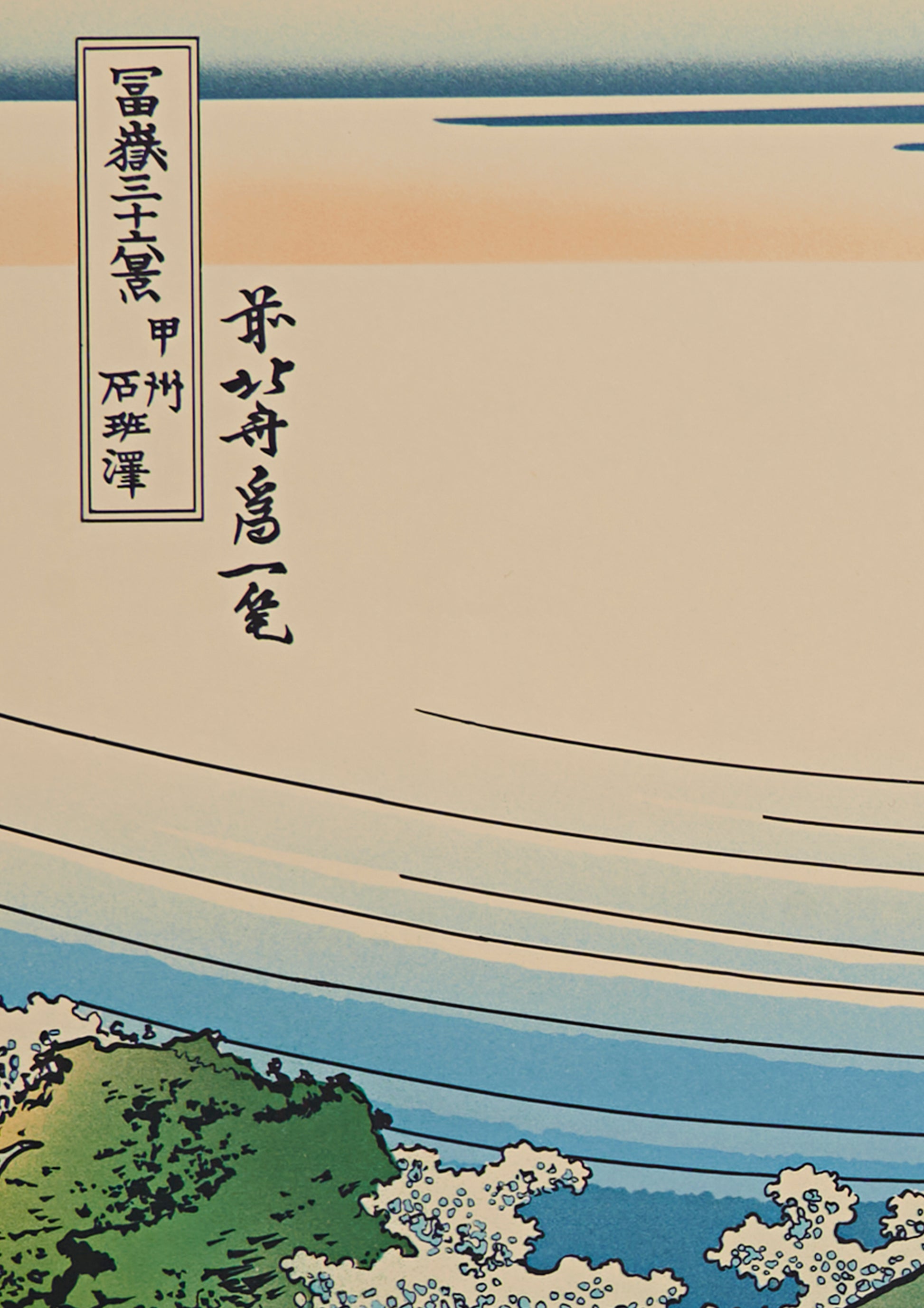 Initially, the print was rendered in shades of blue, regarded as one of Hokusai’s finest "aizuri-e" (blue prints). Later editions included additional colors, such as orange in the clouds, enhancing the overall vibrancy.